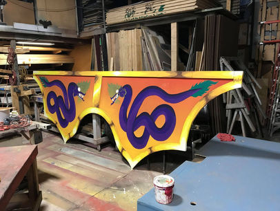 La Comedia’s run of Rodgers and Hammerstein's The King and I was cut short by COVID-19, but I am quite proud of the work I did on the production. Due to a last minute replacement of the show's designer, paint elevations were never produced. Instead, I was free to make all decisions concerning color scheme and illustrative solutions. In addition to all paint application, I helped our part time master carpenter direct the carpenters, installed and troubleshooted electric motors for large set pieces and olios, and lead the final installation of the show.
